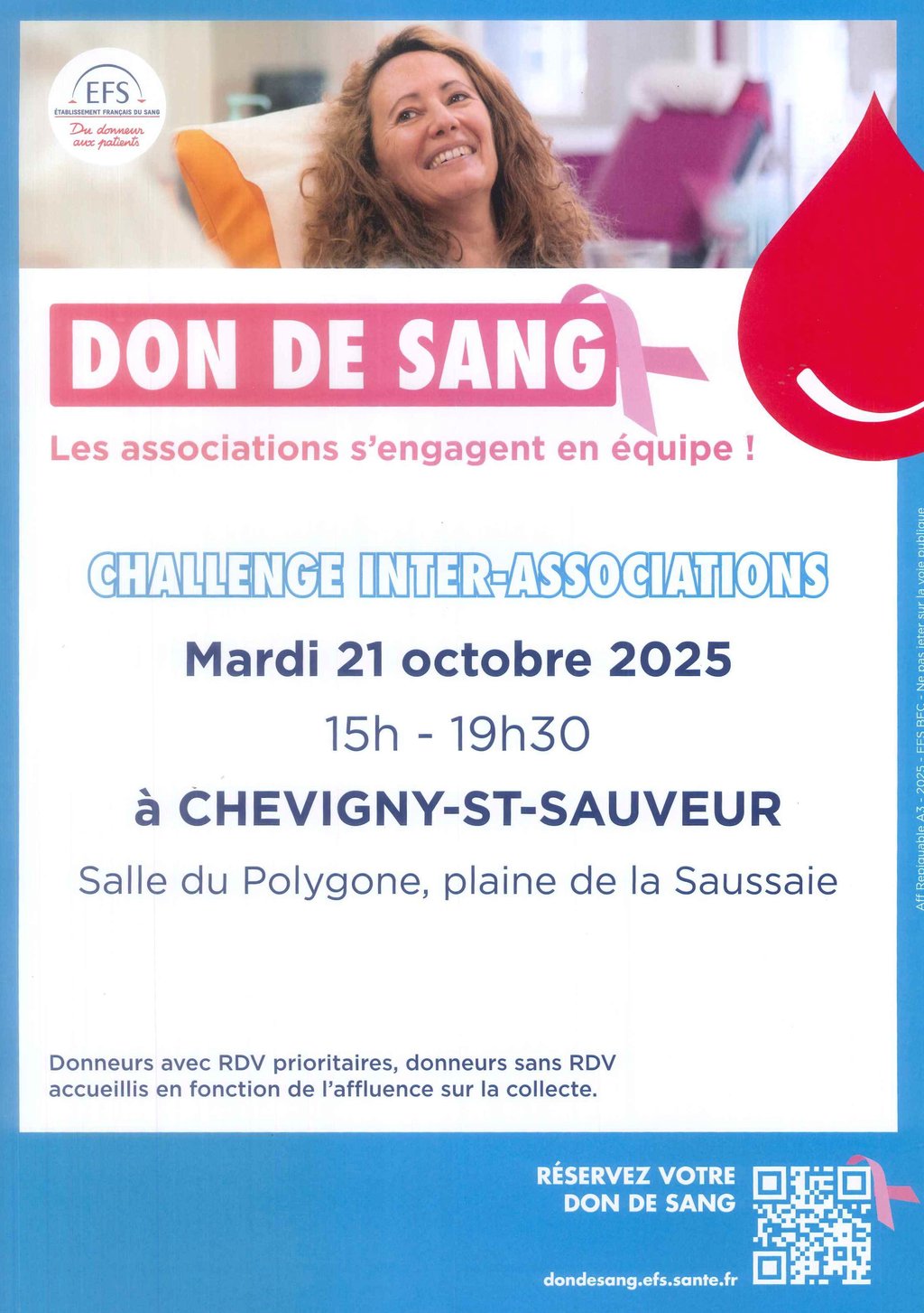 DON DU SANG A CHEVIGNY SAINT SAUVEUR LE 21 OCTOBRE