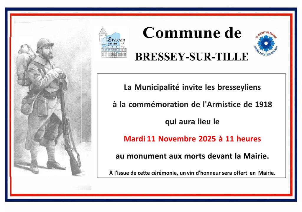 La Municipalité invite les Bresseyliens à la commémoration de l'Armistice de 1918 qui aura lieu