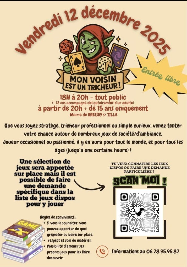 La nouvelle association "Mon voisin est un tricheur" organise une soirée jeux de société le Vendredi 12 Décembre 2025