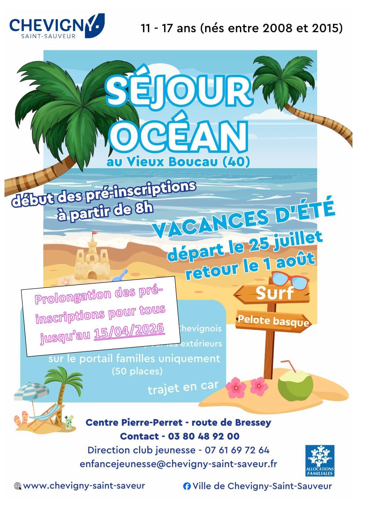 ATTENTION : Les documents obligatoires doivent être déposés sur le portail familles au plus tard pour le séjour Océan le 30 juin 2026.
