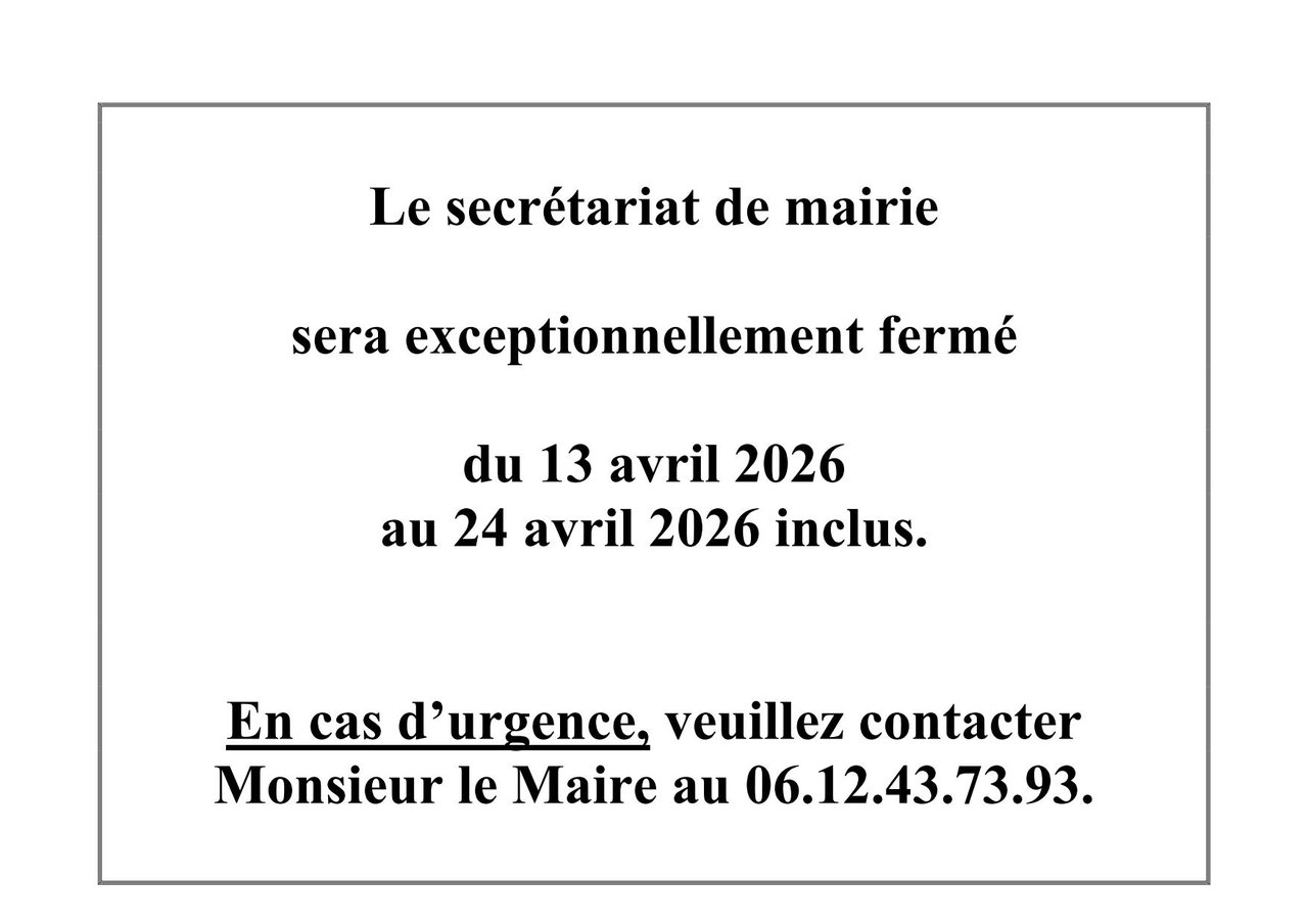 En cas d'urgence, merci de contacter Mr le Maire au 06.12.43.73.93