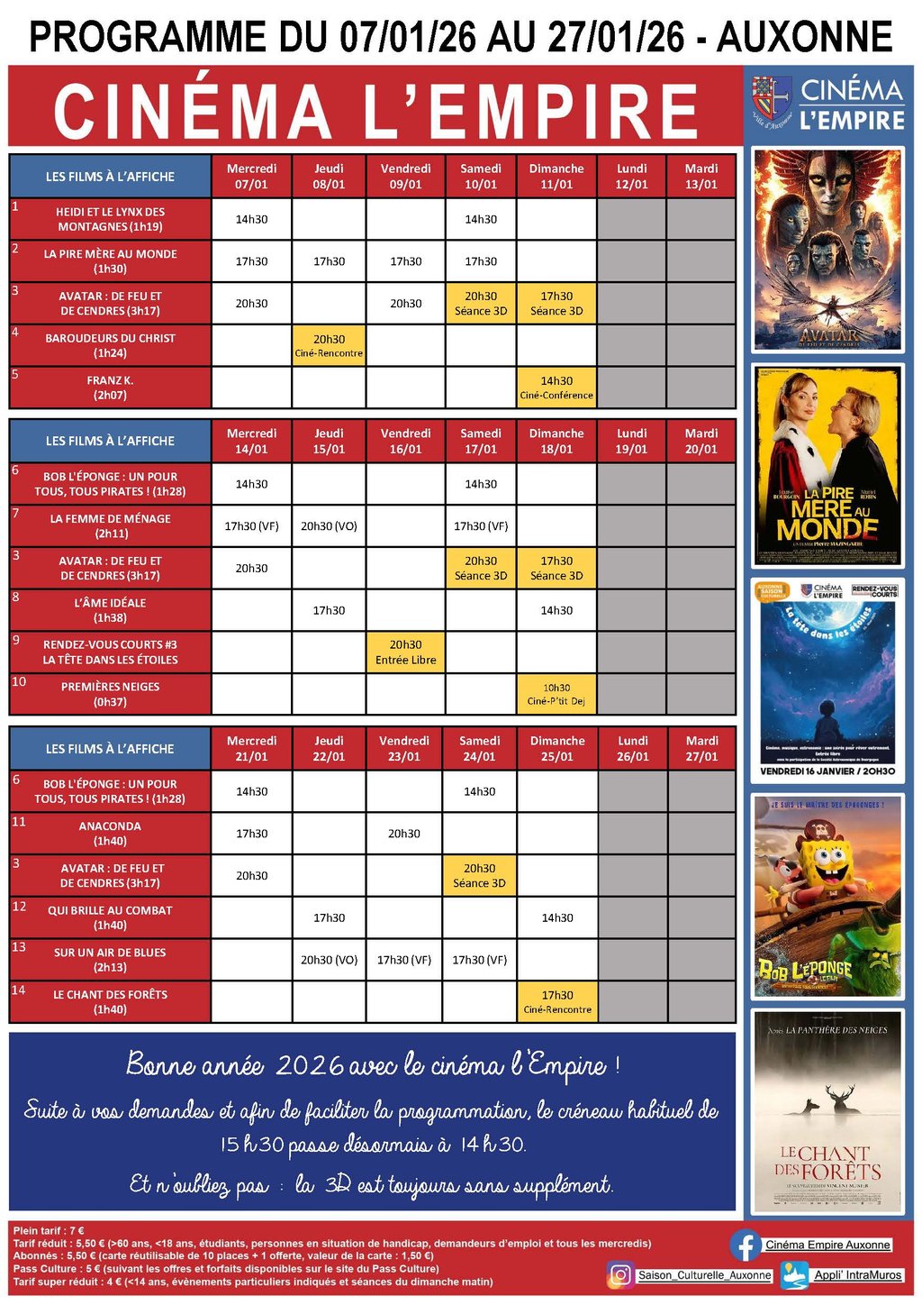 Ce programme annonce également le retour du Festival du cinéma régional d'Auxonne les 24, 25 et 26 avril 2026